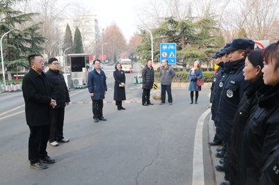 張士強校長一行先后來到主校區東南門、梅花館、校醫院,舜耕校區東門、綜合樓、鍋爐房等處,親切慰問節日期間堅守在工作崗位的安全管理、后勤和醫療工作者。