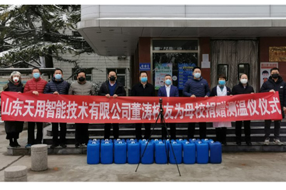 11日,體育學院李浩校友在嚴密繁瑣檢查程序后,不辭辛苦驅車專程從棗莊長途送來一噸84消毒液原液,為學校公共場所消殺防控提供了及時有力的支持。16日,為幫助母校提高體溫檢測安全性和檢測效率,化學化工院董濤校友購買后第一時間趕到母校,捐贈目前最為先進的遙感體溫監測儀;同日,政法學院霍常青校友也及時伸出援助之手,專程返回母校捐贈消毒液一噸。
