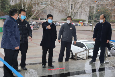 在學校2020年春季學期本科線上教學全面有序開展之際,為進一步促進學校各項疫情防控工作落實落細,2月25日上午,學校黨委書記徐景顏,副校長劉宗明,相關部門負責同志到教務處、八食堂、學生宿舍等地檢查疫情防控工作。