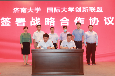 7月8日,濟南大學與國際大學創新聯盟戰略合作簽約儀式在濟南大學舉行。國家外國專家局原常務副局長孫照華,濟南大學黨委書記徐景顏、校長張士強、黨委副書記王玉華、副校長李光紅,國際大學創新聯盟秘書長孫萬松、執行秘書長姜明,樂在(北京)文化傳播有限公司董事長樊穎之,芒果文創基金高級風控經理吳介然及國際大學創新聯盟有關基金項目負責人,學校黨委辦公室、校長辦公室、人力資源處、教務處、科技處、國際合作與交流處、合作發展處,機械工程學院、自動化與電氣工程學院、信息科學與工程系學院、美術與設計學院、文化和旅游學院、創業學院相關負責同志、部分師生代表參加儀式。儀式由王玉華副書記主持。