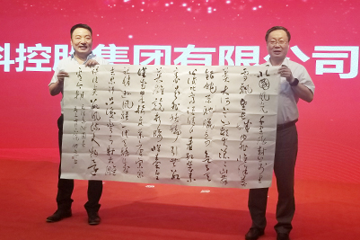 最后,張士強校長代表學校向博科集團贈送我校書法家于劍波書法作品——《沁園春·雪》,表達對博科集團的美好祝福,望雙方繼續努力,不斷拓展合作的深度,合力譜寫創新創業共同體新篇章。