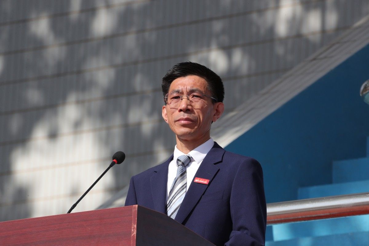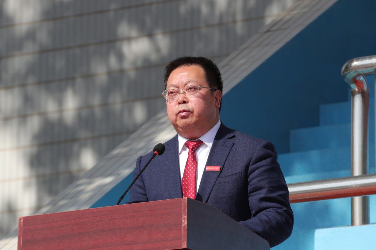 校長劉宗明致開幕詞。他首先代表學校對運動會的勝利召開表示熱烈的祝賀!向為運動會籌備付出辛勤勞動的師生員工表示衷心的感謝!向參加運動會的全體運動員、教練員和裁判員表示親切的問候!特別向前來參會的各地校友表示誠摯的歡迎!