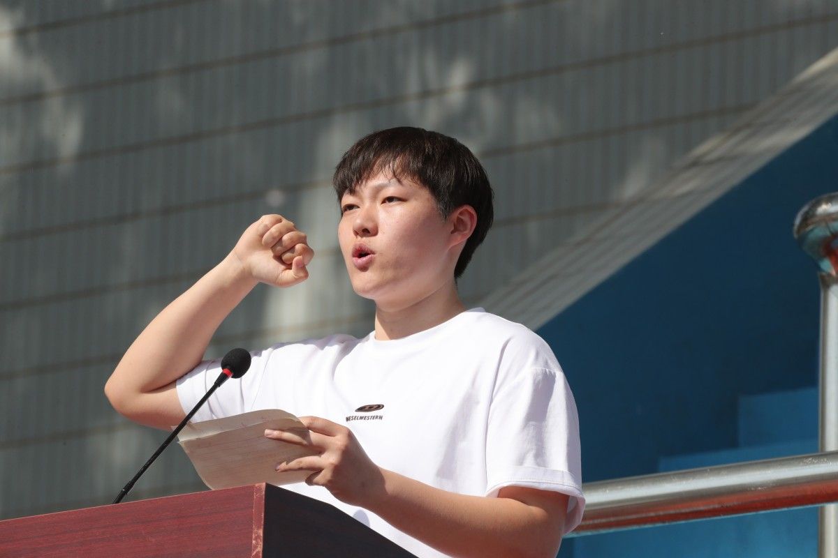 劉冉和陳一諾分別代表裁判員和運動員宣誓。