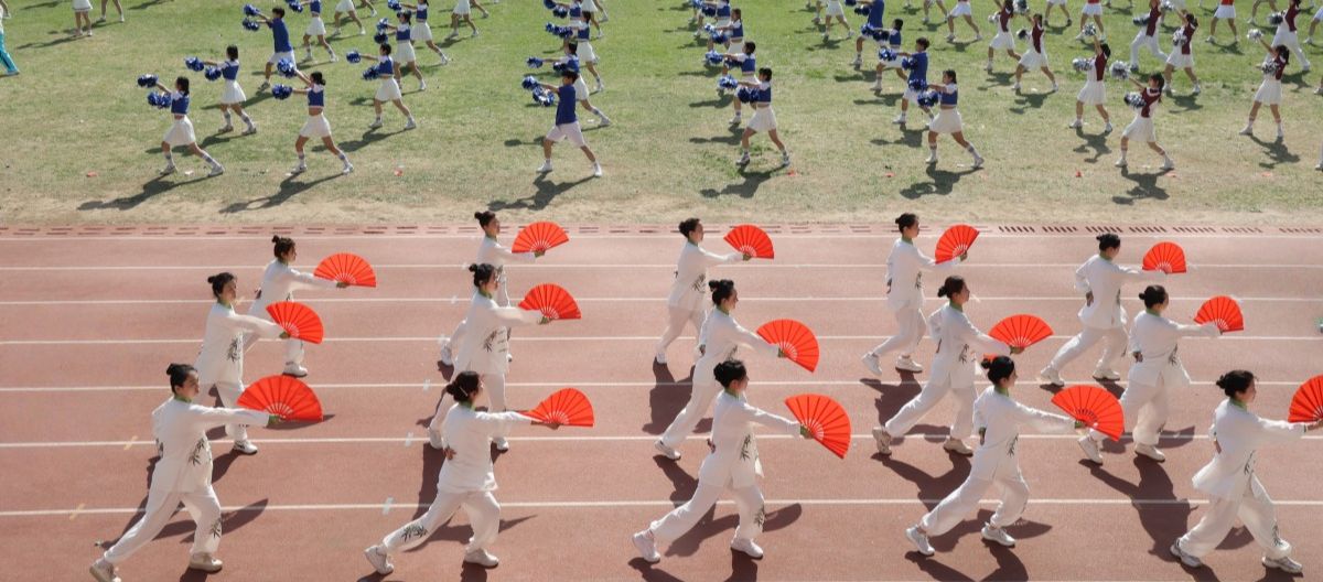 運動員、裁判員退場后,精彩的校園健身操表演開始。青春與活力的展現,朝氣與蓬勃的澎湃,優美的表演、舒展靈活的動作,學生們在和諧的節律中詮釋著青年學子健康向上的精神風貌。