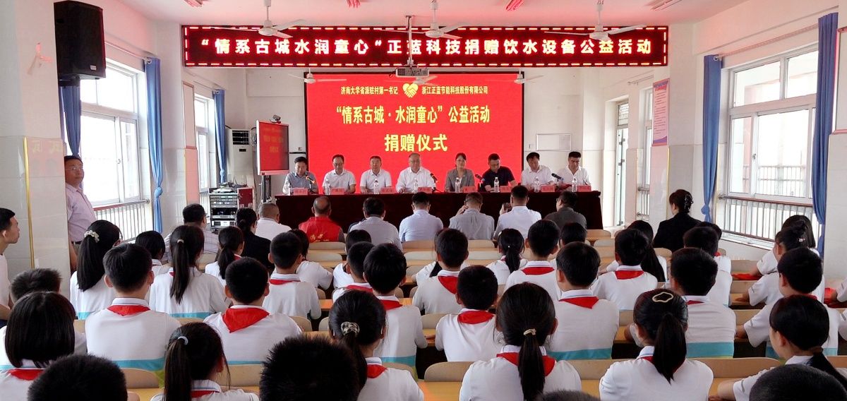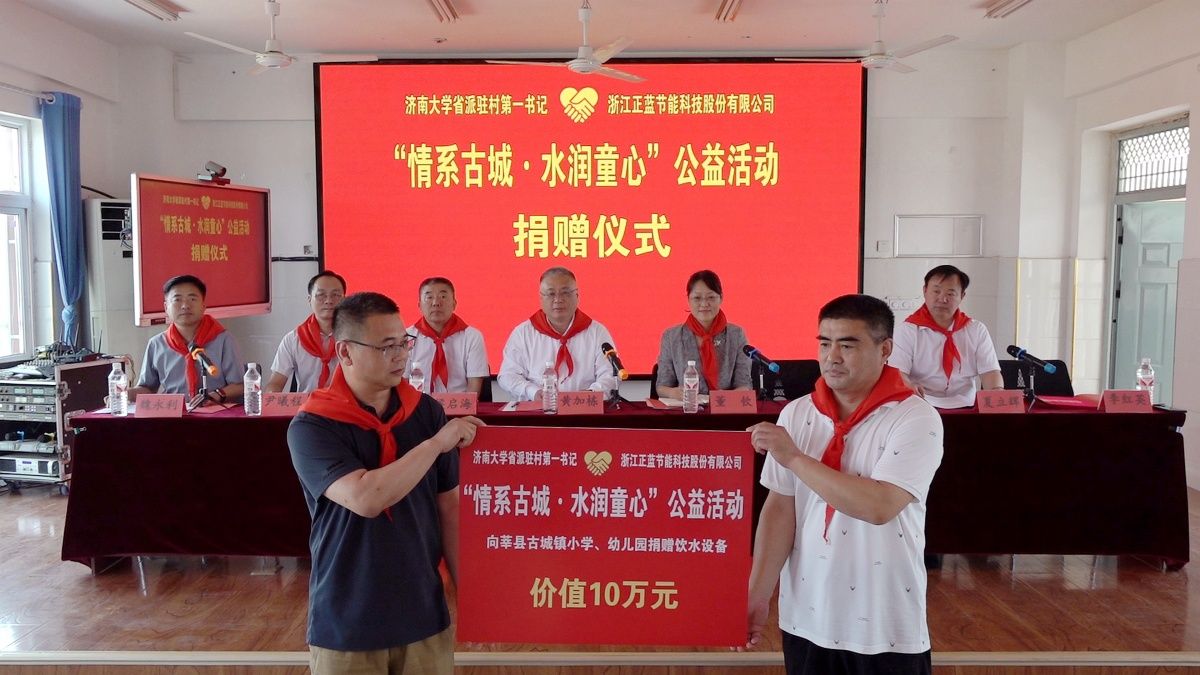 張玉賀代表浙江正藍節能科技股份有限公司向古城鎮小學、幼兒園捐贈了價值10萬元的飲水設備。他在講話中承諾,浙江正藍節能科技股份有限公司將持續踐行社會責任,助力鄉村振興。據悉,此次捐贈的飲水設備將覆蓋古城鎮2所小學和1所幼兒園,惠及千余名師生。