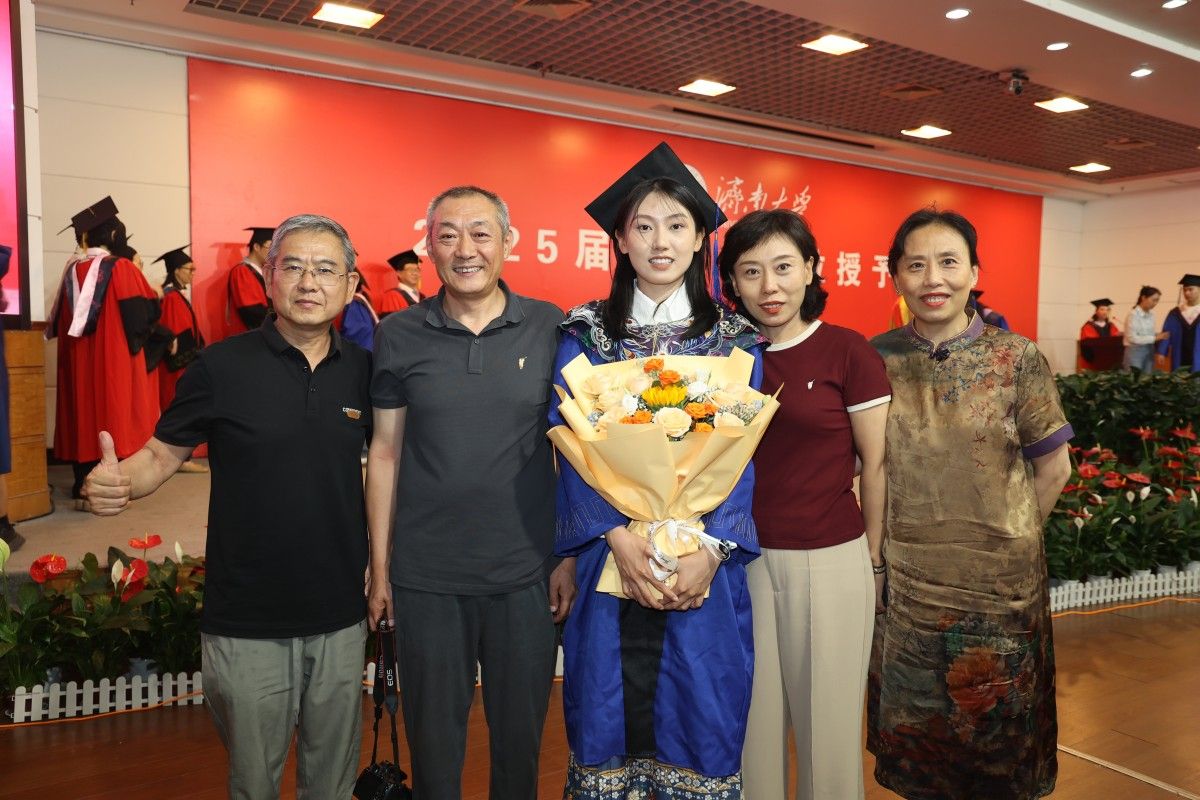 授予儀式上,各學(xué)院院長發(fā)表了深情的寄語。曾經(jīng),同學(xué)們帶著行李箱和憧憬站在校門口;如今,你們的行囊里裝著論文、各種榮譽和無數(shù)個挑燈夜讀的奮斗歷程即將離開校園。曾經(jīng),你們的目光里充滿著青澀與好奇;如今,你們攜著成長與勇氣,目光堅定地奔赴遠方。作為老師感到無比欣慰與自豪。在濟大,你們踐行著“弘毅、博學(xué)、求真、至善”的校訓(xùn),不斷錘煉品德、掌握實學(xué)、強大自我,練就一身本領(lǐng)的你們即將遠行告別母校,愿你們此去前程似錦,歸來仍是少年。