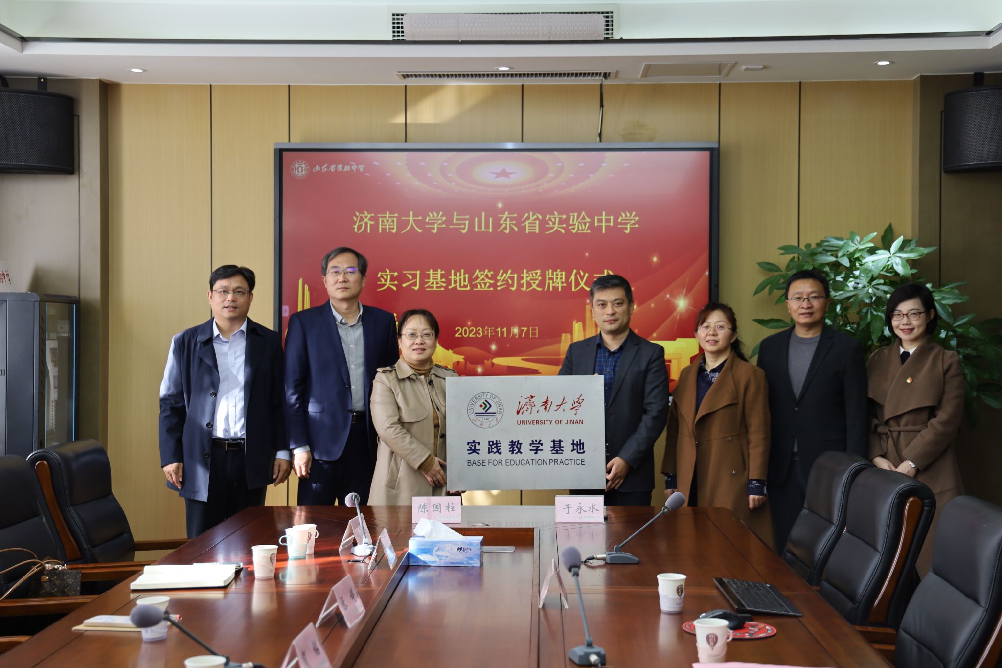 為加強我校師范生教育實踐基地建設,密切與優秀基礎教育學校之間的聯系,探索師范生校校育人模式,11月7日,我校分別與山東省實驗中學和山東省濟南實驗初級中學簽署實踐教學基地協議。教務處 師范教育管理辦公室主任張婷、化學化工學院黨委書記賀銘、院長陳國柱一行8人參加簽約揭牌儀式。山東省實驗中學副校長于永水,山東省濟南實驗初級中學校長郭隆剛等學校領導班子成員分別參加簽約揭牌儀式。