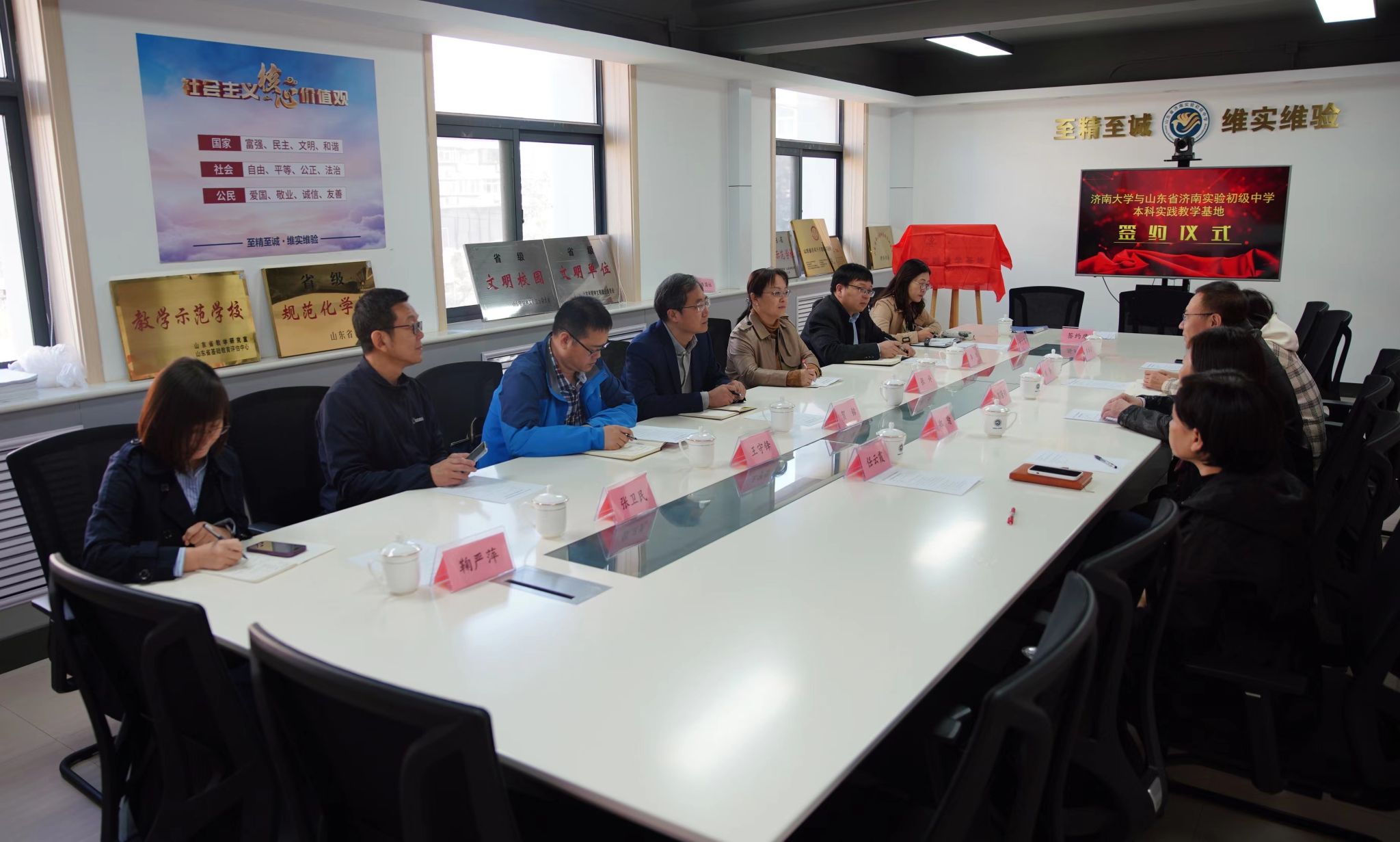 山東省實驗中學副校長于永水、山東省濟南實驗初級中學校長郭隆剛分別介紹了學校基本情況。兩所中學均表示將認真落實協議內容,發揮特色資源優勢,抓好實踐基地建設,確保實踐教學質量。隨后,雙方圍繞優質教育實踐基地建設,實踐政策文件制定、常態化“三習”指導資料落實、全方位實踐評價體系構建、深層次合作研究項目打造、專業化 “雙導師”隊伍建設等內容進行了深入交流。