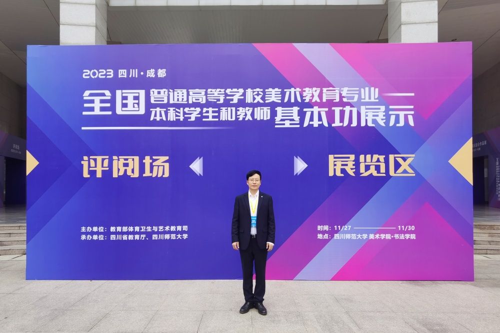 2023年11月27日,由山東省教育廳組織帶隊,美術與設計學院楊海波副院長作為聯絡員,和參賽選手馬立洪老師一起前往四川成都參加比賽。本屆基本功展示為期四天,設教學展示(微課)、專業能力展示、審美和人文素養展示三個項目,三個項目所有組別參展教師均須參加,展示新時代高校美術教育專業教師的綜合素質、專業化水平和創新實踐能力。此次展示活動共有來自全國31個省、自治區、直轄市、直轄市以及新疆生產建設兵團107所高校的346名師生參加。