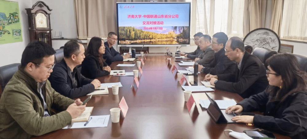 3月13日,山東聯通科技創新部總經理付翔、科技創新部總監王立本等一行五人來校進行科技合作對接,學校科技處、教務處、信息管理處、信息科學與工程學院等部門及學院負責人參加了交流活動。