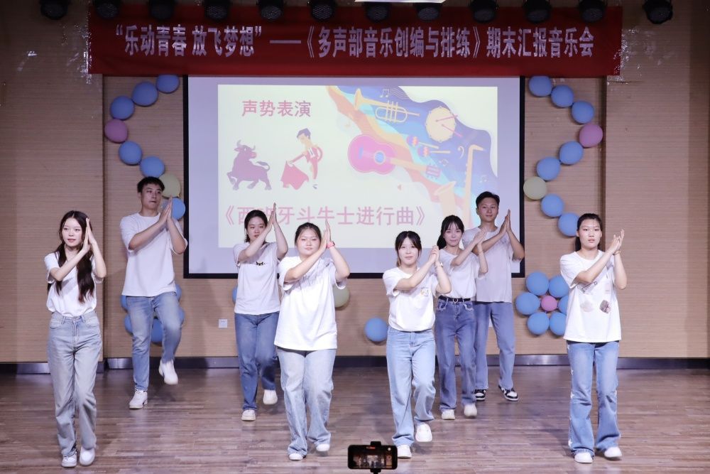 為培養(yǎng)具有理想信念、優(yōu)良職業(yè)素養(yǎng)的高層次應(yīng)用型音樂專門人才,提升研究生培養(yǎng)質(zhì)量,7月1日“樂動青春·放飛夢想”音樂學(xué)院成功舉辦藝術(shù)碩士音樂教育方向《多聲部音樂創(chuàng)編與排練》暨《綜合即興編創(chuàng)》協(xié)作類核心課程期末匯報音樂會。音樂學(xué)院副院長王建成,研究生院副院長仲倩,音樂學(xué)院副書記、副院長董曉寧,部分教師、研究生導(dǎo)師、全體研究生參加本次音樂會。