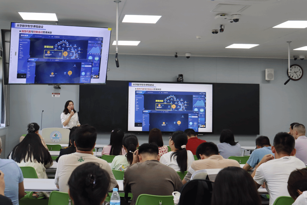 報告會上,劉洪霞通過“AI數(shù)字人課堂”等實例分析,闡述了人工智能如何與混合式教學(xué)深度融合、如何為傳統(tǒng)教學(xué)模式帶來革新,同時展示了人工智能技術(shù)在提升教學(xué)效率、個性化學(xué)習(xí)等方面的巨大潛力,為達(dá)成全面育人目標(biāo)提供了切實可行的策略。報告聚焦大學(xué)數(shù)學(xué)課程群知識圖譜的構(gòu)建,詳細(xì)解析了知識圖譜在梳理課程體系、促進(jìn)知識融合中的重要作用。為推進(jìn)數(shù)智賦能教學(xué),劉洪霞針對大學(xué)數(shù)學(xué)教學(xué)的新范式提出了若干前沿探索。