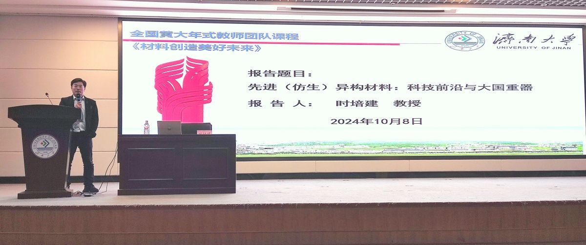 在講座中,時培建結合自己的科學研究從“多級異構高熵材料的力學行為”“結構-功能一體化先進異構材料的設計與制備”“先進(仿生)異構材料的重點應用”等三個方面為在場師生呈現了一場集專業性、先進性、前瞻性于一身的高水平課程講座,大家受益匪淺。講座過程中,時培建深情回顧了他在濟南大學的學習歷程,與在場人員特別是在校大學生分享了自己科研學習經歷和心得體會,強調科研過程中要堅持奮斗、培養興趣,鼓勵大家積極參與科技創新,盡快找到符合自身發展的人生道路。講座結束后,時培建與師生們就個人成長與發展、專業學習和參加科創賽事等問題展開了研討,會議氣氛熱烈。