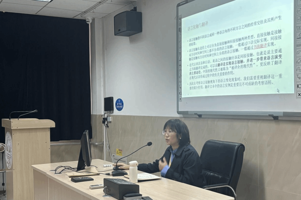 薛桂譚以“語料庫翻譯學視域下的語言接觸研究”為主題,從語料庫翻譯學的視角切入,生動介紹了語言接觸研究的重要性及其現實意義。她結合自身的科研經驗,強調研究方面要注重搜集一手資料,研究方法注重語內對比與語際對比相結合的方法和基于語料庫的語言接觸研究方法,并結合定量研究方法進行數據支持和語料搜集,通過漢日語言接觸的實證研究,揭示了日語對漢語語法的影響,修正了我們對某些漢語語法特征的認識,引發了現場聽眾的廣泛共鳴與思考。講座內容深入淺出,理論結合實際,為與會者帶來了一場充滿啟發性的學術盛宴。