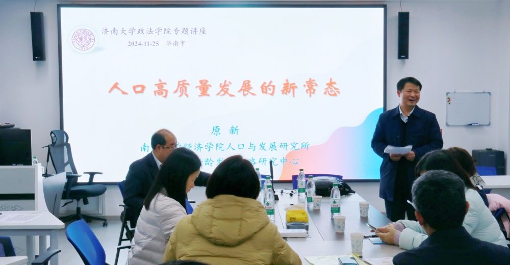 11月25日下午,政法學院青龍山學術論壇在第四教學樓413室成功舉辦。本次學術論壇特邀南開大學老齡發展戰略研究中心主任、中國老齡協會/南開大學老齡社會治理戰略研究中心主任原新教授作題為《人口高質量發展的新常態》的學術報告,報告由社科處處長、政法學院院長高功敬教授主持,政法學院教師及學生共計七十余人參加。
