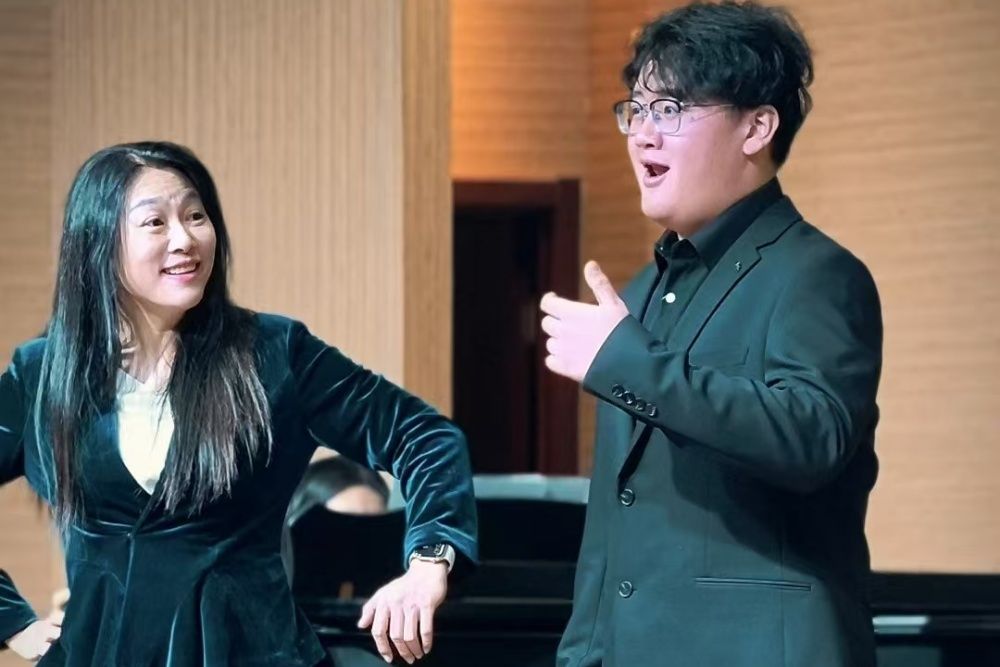 講座期間,陳冠馥悉心指導了六名學生,她認真傾聽學生們的演唱,針對每位學生的發聲技巧、情感表達以及舞臺表現逐一進行細致入微的點評與糾正。她對同學們的演唱作品的分析細膩到位,如軀體的放松、用力及情感的表達等,從氣息的控制到音符的精準把握,從對歌曲內涵的理解到肢體語言的運用,陳冠馥都毫無保留地分享自己的經驗與見解,以生動的示范引導學生們領悟音樂表演的精髓,助力他們在藝術之路上不斷成長與進步。