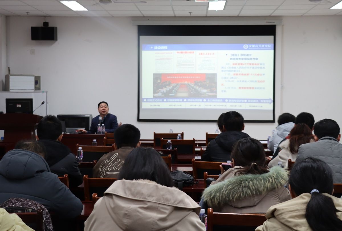3月27日,研究生院在特教樓A座302室舉辦“產(chǎn)教融合、協(xié)同育人導(dǎo)師指導(dǎo)能力提升報告會”,旨在深化校企合作機(jī)制,優(yōu)化人才培養(yǎng)模式。安徽高等研究院黃飛教授作主題報告,副校長徐征和出席報告會,材料科學(xué)與工程學(xué)院、化學(xué)化工學(xué)院等工科學(xué)院(平臺)的博士、碩士生導(dǎo)師參會。會議由研究生招生辦公室主任張志全主持。