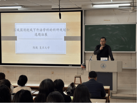 4月15日下午,外國語學院舉辦了題為“區域國別學視域下外語學科的科研拓展及學術發表”的學術講座。本次講座邀請復旦大學外國語學院副院長、國家級重大人才工程青年學者、中外語言文化比較學會區域文化研究專業委員會會長、國際易卜生委員會委員、高校國別和區域研究人才培養院系聯盟副理事長、《復旦外國語言文學論叢》(CSSCI)副主編陳靚教授主講。外國語學院院長宋慶偉主持講座,學院教師、在讀研究生以及本科生參加了本次講座。