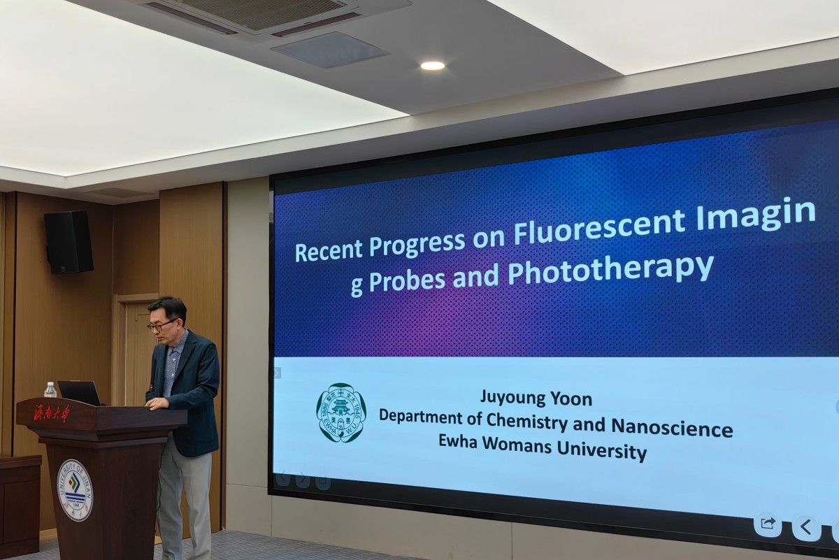 Juyoung Yoon教授的報告題目為“Recent progress on fluorescent imaging probes and phototherapy”,他詳細(xì)介紹了熒光探針、光動力治療和光熱治療方面的重要進(jìn)展,分享了他們在新型熒光成像探針、智能光療納米材料領(lǐng)域的創(chuàng)新成果。報告內(nèi)容條分縷析,高屋建瓴,為該領(lǐng)域的研究帶來了新的思路和方向。