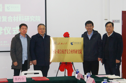 簽約暨揭牌儀式上,德州聯合拓普復合材料科技有限公司總經理李顏華與濟南大學科技成果轉化辦公室副主任張志國簽署了共建“濟南大學-聯合拓普復合材料研究院”協議,濟南大學科技處處長黃加棟與德州運河經濟開發區管委會副主任蘇樹江、聯合拓普公司總經理李顏華同為“濟南大學-聯合拓普復合材料研究院”揭牌。
