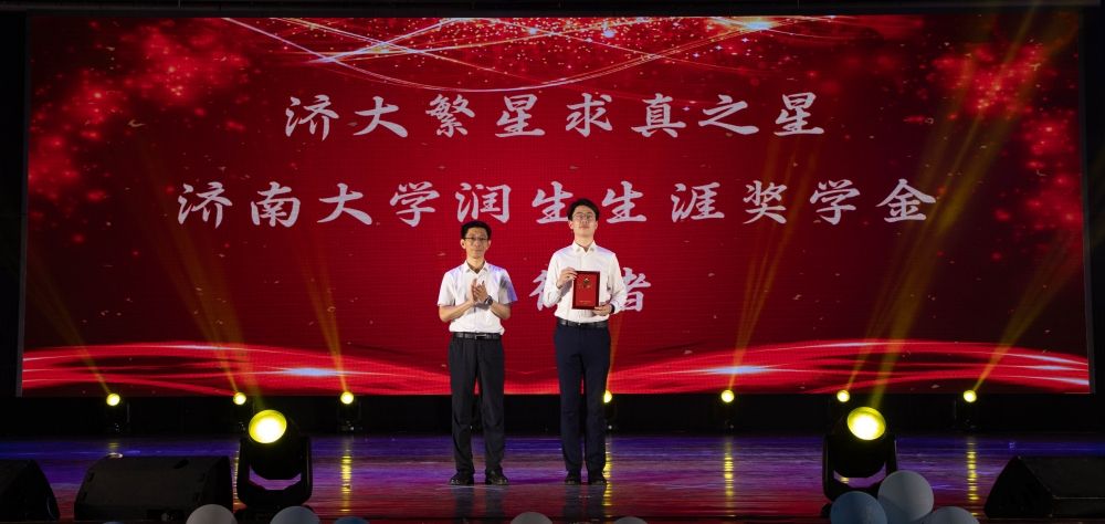 為表彰先進,樹立榜樣,集中展示學院育人成果,學院對表現突出的“朋輩之星”學生代表進行表彰。續鐵為宋健獎學金獲得者頒獎,李強為濟大繁星·求真之星、濟南大學生潤生生涯獎學金獲得者頒獎,黨委保衛部、安全管理處部(處)長李榮光為國家獎學金獲得者代表頒獎,教務處處長、教學質量與評估辦公室主任、招生辦公室主任陳貞翔為科創競賽國家級獎勵學生代表頒獎,校團委書記胡春毅為濟南大學十佳團支部、十佳志愿者協會、十佳志愿者、市中區大學生兼職團干部代表頒獎,黨委宣傳部文化中心主任趙華磊和黨委學生工作部(處)副部(處)長馬杰共同為優秀畢業生代表頒獎。