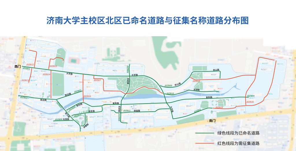 本次征集命名涉及濟南大學主校區(北區9條、南區7條)、舜耕校區(6條)的道路共22條。