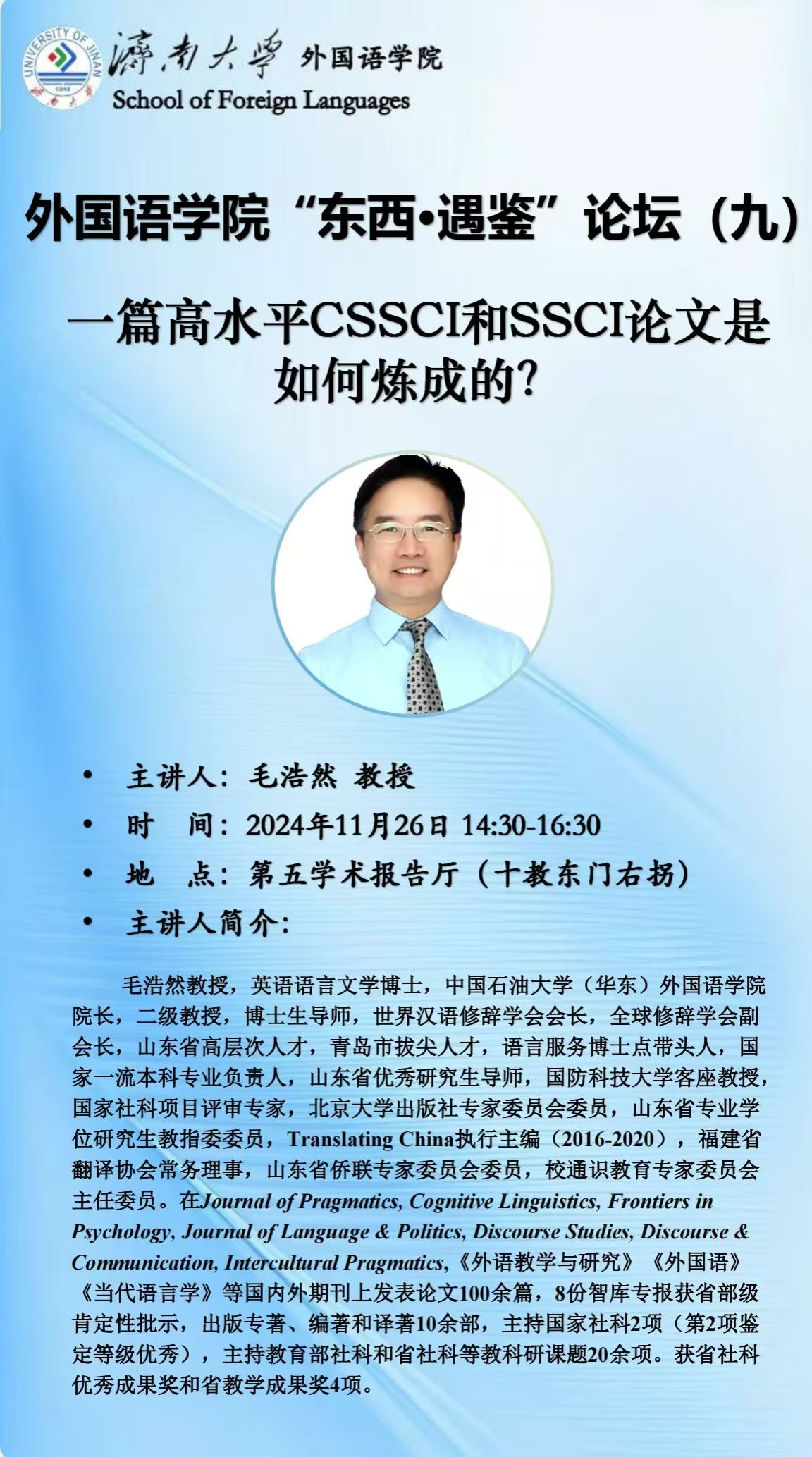 日期:2024-11-26來源:外國語學院 瀏覽量: